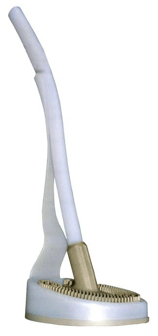 Szczotka wykonana z syntetycznego kauczuku przeznaczona do czyszczenia muszli toaletowej. Przekrój "włosia" w kształcie litery V stosowany w naszych szczotkachc daje najlepszy efekt czyszczący. Gumowa powierzchnia szczotki, którą czyścimy muszlę ma kształt serce - jest to idealna forma specjalnie zaprojektowana po to by dotrzeć do każdej krzywizny muszli. Materiał, z którego jest wykonana - guma - zapewnia optymalną styczność szczotki z czyszczoną powierzchnią. Szczotka ma wbudowane pojedyncze gumowe źdźbła o przekroju litery V, dzięki czemu, w przeciwieństwie do tradycyjnych szczotek WC, które posiadają włosie wbudowane w postaci "pęczków", nie rozpryskuje wody. Szczotkę można stosować samodzielnie lub w połączeniu z płynami przeznaczonymi do mycia toalet. Jest odporna na kwas i zasadowe środki zapachowe.